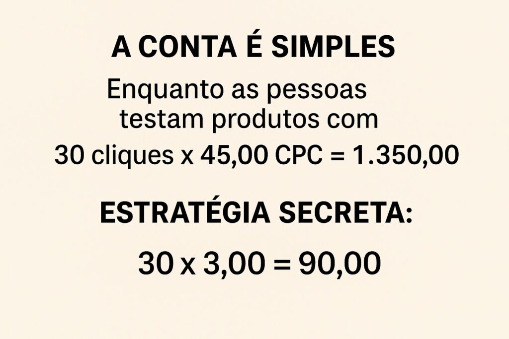 Ignorar essa oportunidade e seguir insistindo nas mesmas estratégias que todo mundo usa — pagando CPCs altos, entre R$35 e R$45, enfrentando a concorrência pesada dos “tubarões” do mercado. Você até pode conseguir algumas vendas, mas no final, a conta dificilmente fecha, e sua campanha corre o risco de acabar no vermelho.